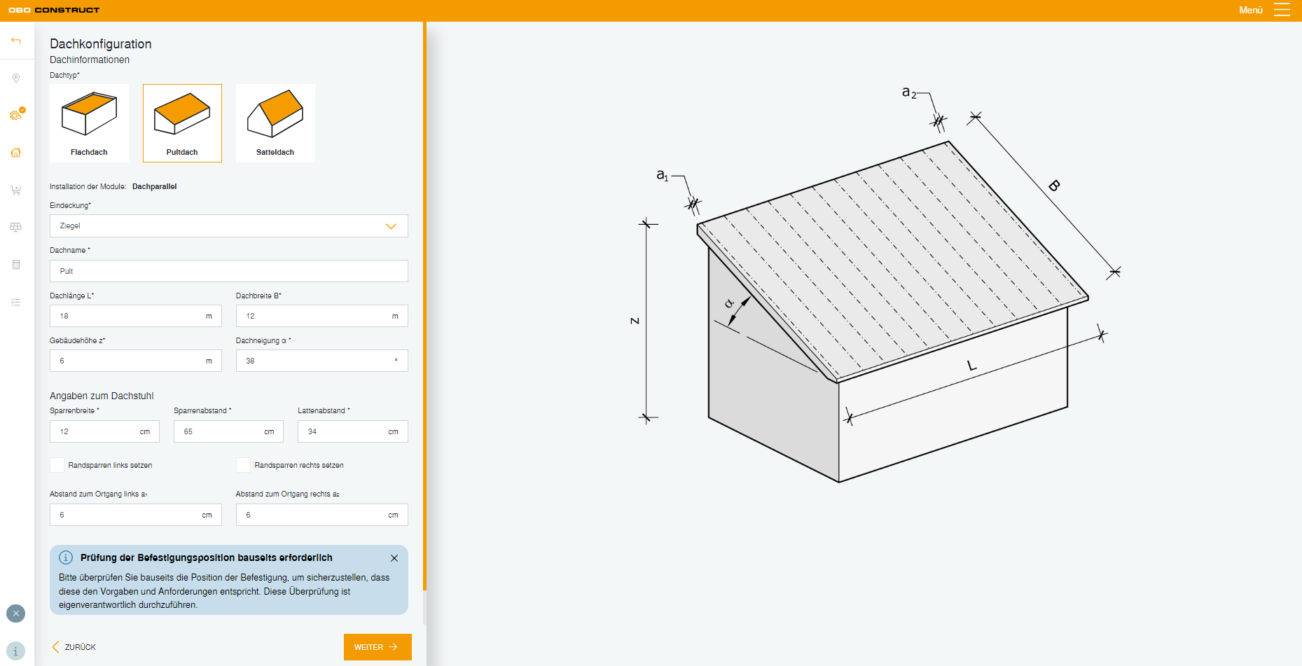 Tutustu aurinkosähköjärjestelmien suunnittelun tulevaisuuteenAurinkopaneelien asennusten suunnittelu on entistä helpompaa OBO Construct Tool suunnitteluohjelman Magic PV ratkaisujen avulla. Suunnitteluohjelman intuitiivinen ja havainnollinen käytettävyys helpottaa ja lyhentää suunnitteluprosesseja. Voit askelittain luoda yksilöllisten vaatimustesi ja hahmotelmiesi mukaisen aurinkopaneelien asennusjärjestelmän.