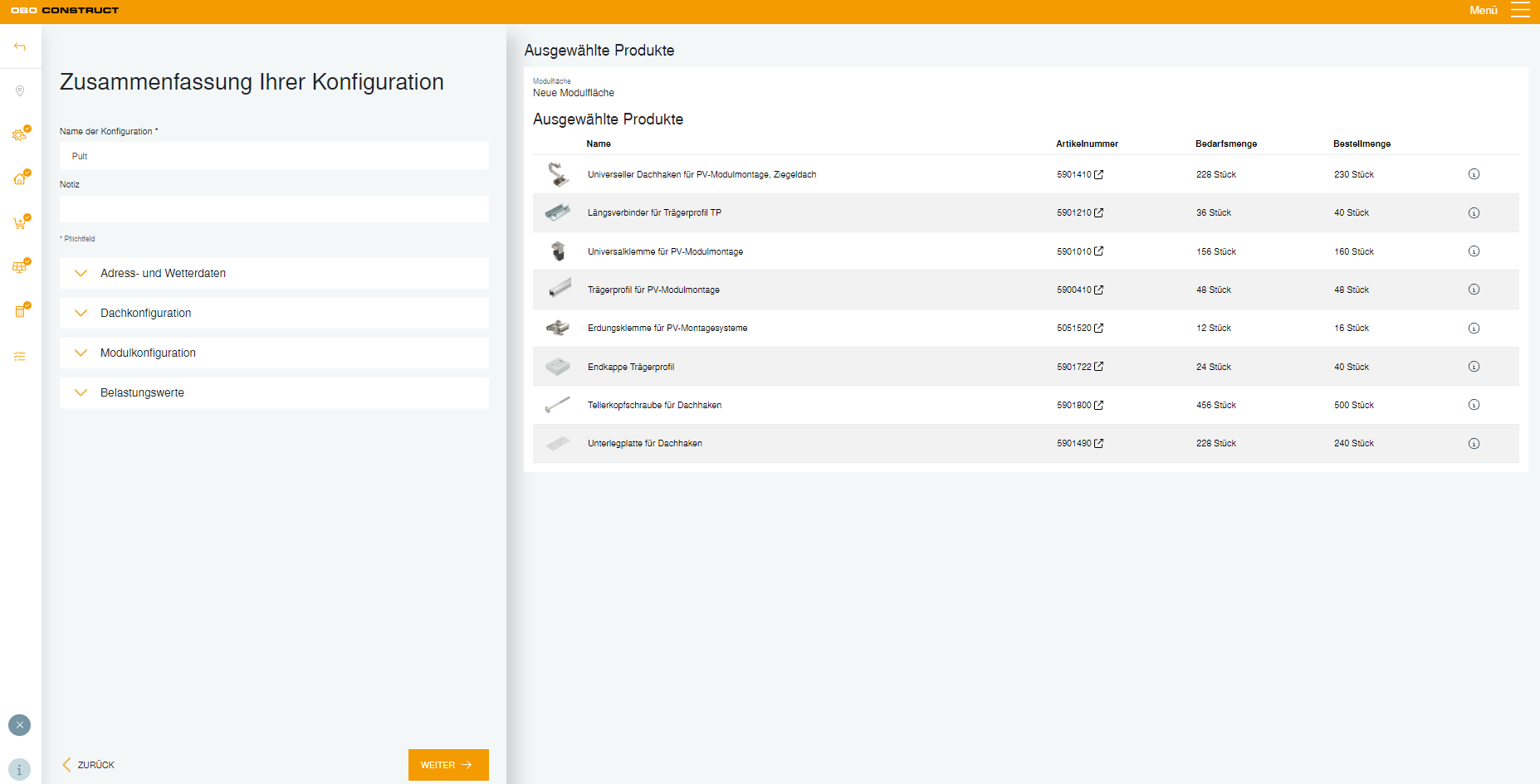 - vain muutamalla napsautuksella sopivaan aurinkopaneelien asennusjärjestelmään
