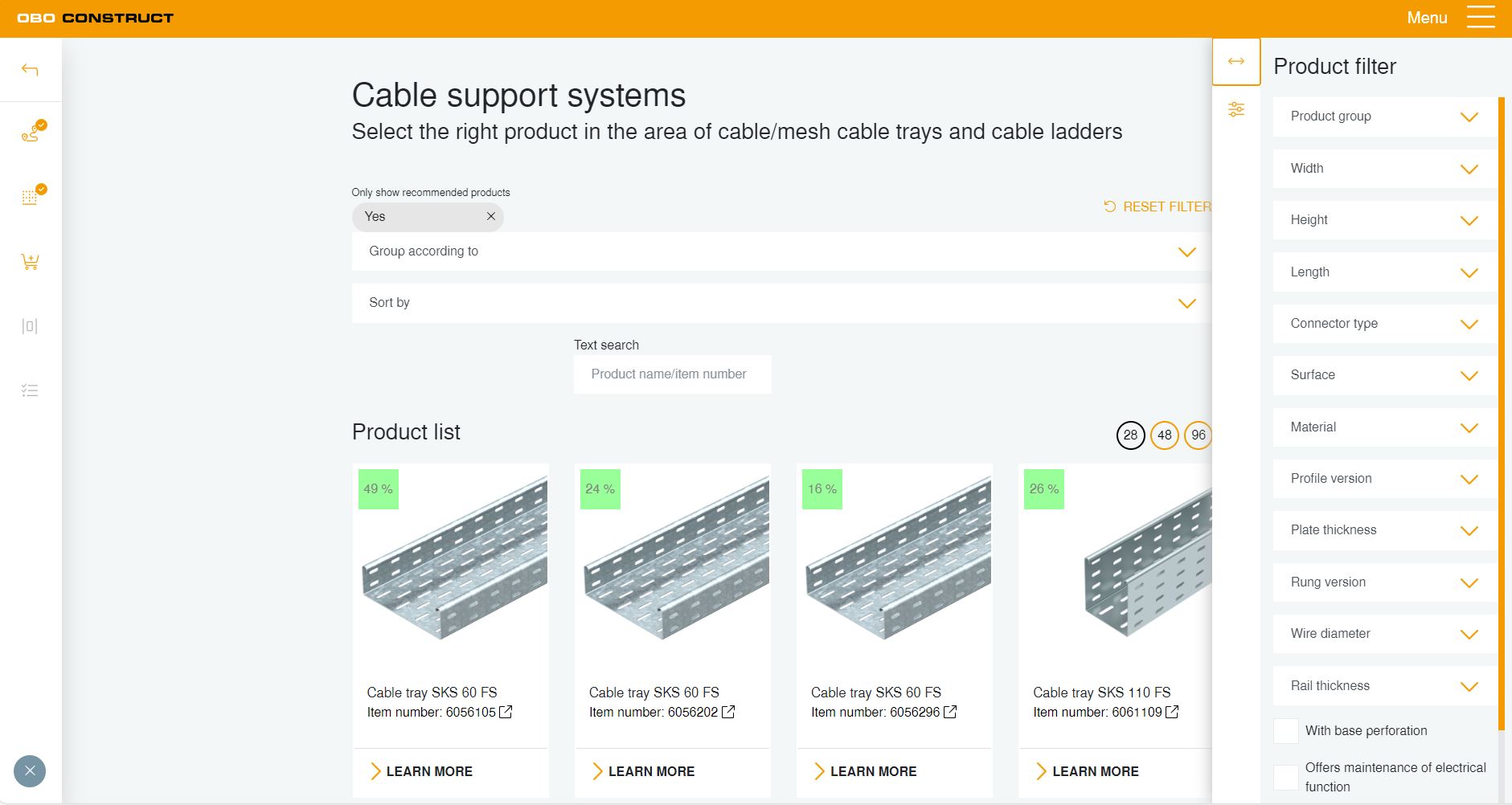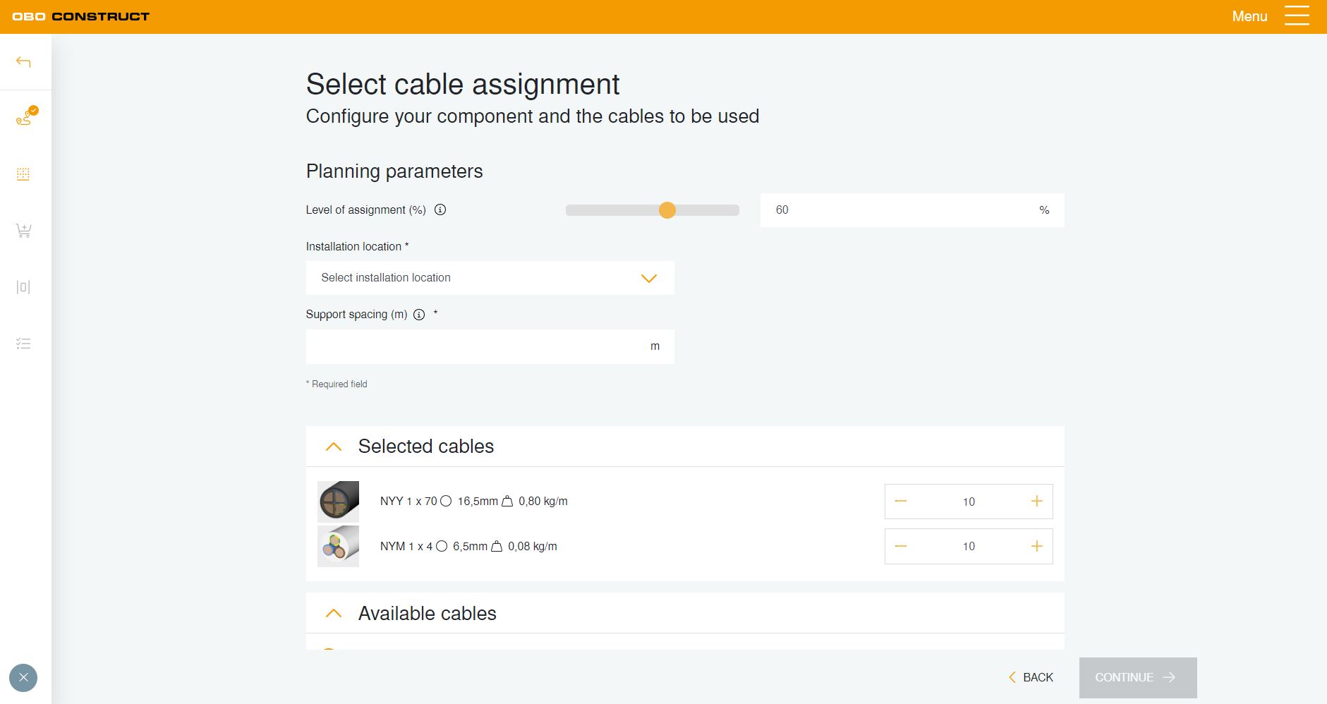 Suunnittelutyökalun avulla on mahdollista laskea projektikohtaisesti kaapelimäärät sekä kaapelihyllyille että myös lattiakanaville. Erilaisia käyttöparametrejä, kuten asennuspaikka, tukiväli, täyttöaste sekä linjojen ja kaapeleiden määrä ja tyyppi, voidaan valita ja niiden kautta siirtyä vaihe vaiheelta tuotevalintaan.