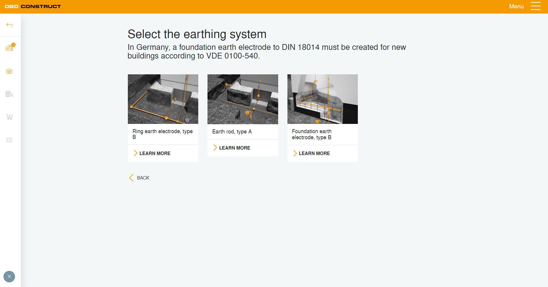 Maadoitusjärjestelmien OBO Construct -ohjelman avulla voit nopeasti ja helposti suunnitella ja määritellä maadoitusjärjestelmän. Yksinkertaisen ja havainnollisen käyttäjäohjauksen ansiosta voit vaihe vaiheelta valita maadoitusjärjestelmän eri osat.