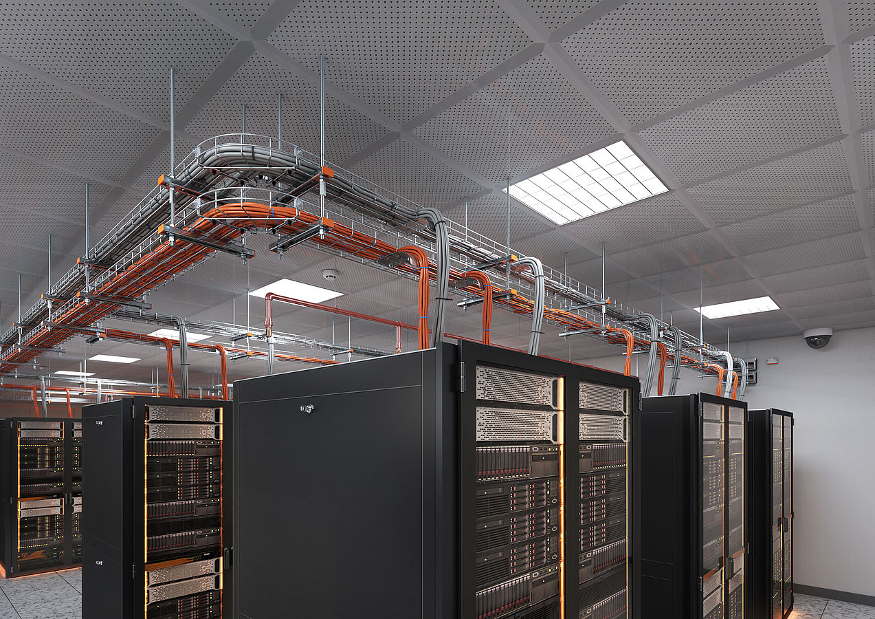 Nykyaikaisissa datakeskuksissa energia- ja tietoliikennekaapelit liitetään datakeskuksen infrastruktuuriin yleensä kahdessa tasossa: tietoliikennekaapelit johdetaan ylhäältä katosta ja energiansyöttökaapelit alhaalta lattiatasosta. Siten voidaan varmistaa monimutkaisten datakeskusrakenteiden siisti ja häiriötön liitäntä. Johtokanavamme ovat tarkkaan suunniteltu tämän ympäristön vaatimusten mukaisiksi.