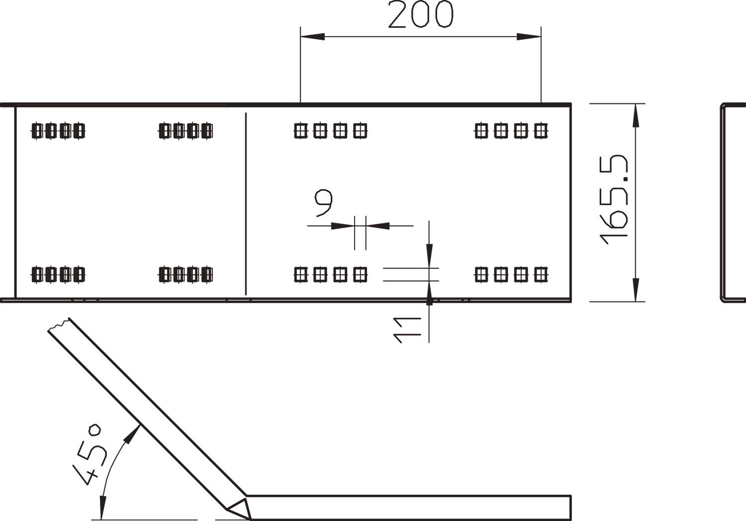 Tuotteen kuvausJatkokappale 45°, vaakasuora levy- ja tikashyllyille sivun korkeudella 160 mm.