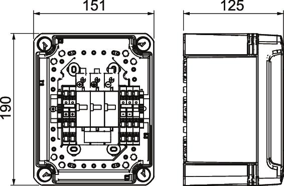 Tuotteen kuvausAggregaatin kytkentärasia tyyppi 2, 2 x 2 aurinkopaneeliketjun kytkentään. Vaihtosuuntaajan DC-puolen suojaukseen.