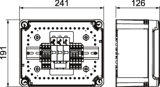 • polykarbonaattirasia (IP67), UV-kestävä ulkokäyttöön, sis. holkkitiivistesarjan ja paineentasauselementin