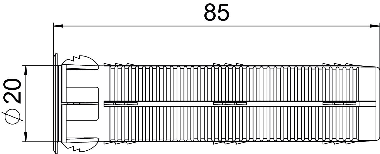 Itsekierteittyvä ei Koko 85 x 26 Laipalla kyllä Malli liitettäväksi Materiaali Polypropylene/polyethylene Mitta D 20 mm Mitta L 85 mm Pituus 85 mm Porareiän halkaisija maks. 20 mm Porareiän syvyys 95 mm Väri beige; RAL 1001 - Kaikki tyypit