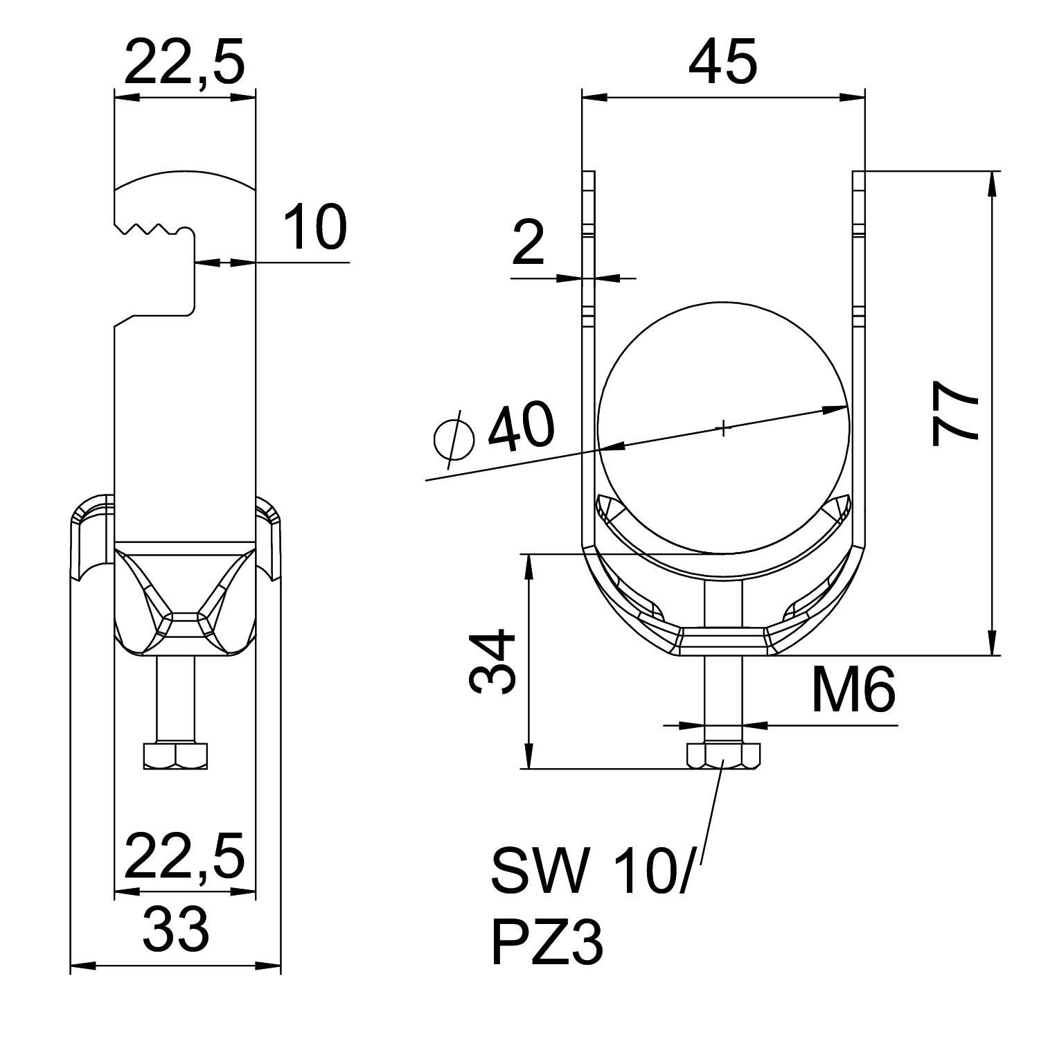 asennusputken halkaisijalle, maks. 40 mm asennusputken halkaisijalle, min. 34 mm Asennustapa Matala profiili CO2-jalanjälki (GWP) kehdosta portille 0,1852 kg CO2e / 1 Kappale Halogeeniton kyllä Kaapelien/asennusputkien lukumäärä 1 Kierre M6 Kiinnitysalue D maks. 40 mm Kiinnitysalue D min. 34 mm Koko 34-40mm Korkeus 77 mm Levyn paksuus 2 mm Lisäys, materiaali teräs Lisäys, pinta kuumasinkitty Maks. Kiristysmomentti 3 Nm Materiaali teräs Metallivanteella kyllä Mitta A 22,5 mm Mitta B 45 mm Mitta C 33 mm Mitta G (mm) M6 Mitta H 77 mm Mitta L 34 mm Mitta t 2 mm Pinta = upottamalla kuumasinkitty Pituus 22,5 mm Pituus, ulkomitat 33 mm Pohjamitta 45 mm Rakoleveys 10 mm Vanteen valmistusmateriaali teräs Vastavanteella ei - Kaikki tyypit