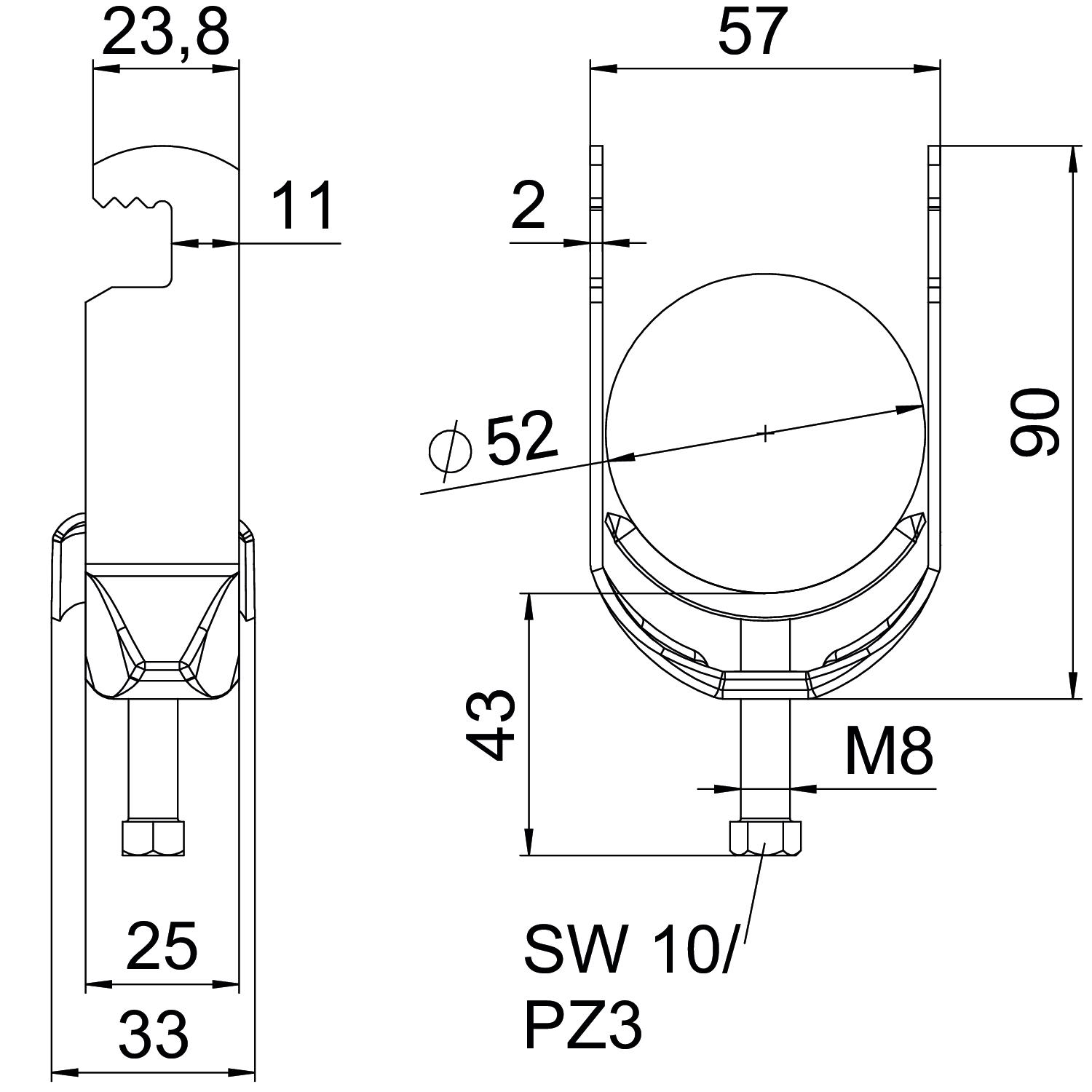 asennusputken halkaisijalle, maks. 52 mm asennusputken halkaisijalle, min. 46 mm Asennustapa Matala profiili CO2-jalanjälki (GWP) kehdosta portille 0,2676 kg CO2e / 1 Kappale Halogeeniton kyllä Kaapelien/asennusputkien lukumäärä 1 Kierre M8 Kiinnitysalue D maks. 52 mm Kiinnitysalue D min. 46 mm Koko 46-52mm Korkeus 90 mm Levyn paksuus 2 mm Lisäys, materiaali teräs Lisäys, pinta kuumasinkitty Maks. Kiristysmomentti 5 Nm Materiaali teräs Metallivanteella kyllä Mitta A 25 mm Mitta B 57 mm Mitta C 33 mm Mitta G (mm) M8 Mitta H 90 mm Mitta L 43 mm Mitta t 2 mm Pinta = upottamalla kuumasinkitty Pituus 25 mm Pituus, ulkomitat 33 mm Pohjamitta 57 mm Rakoleveys 10 mm Vanteen valmistusmateriaali teräs Vastavanteella ei - Kaikki tyypit