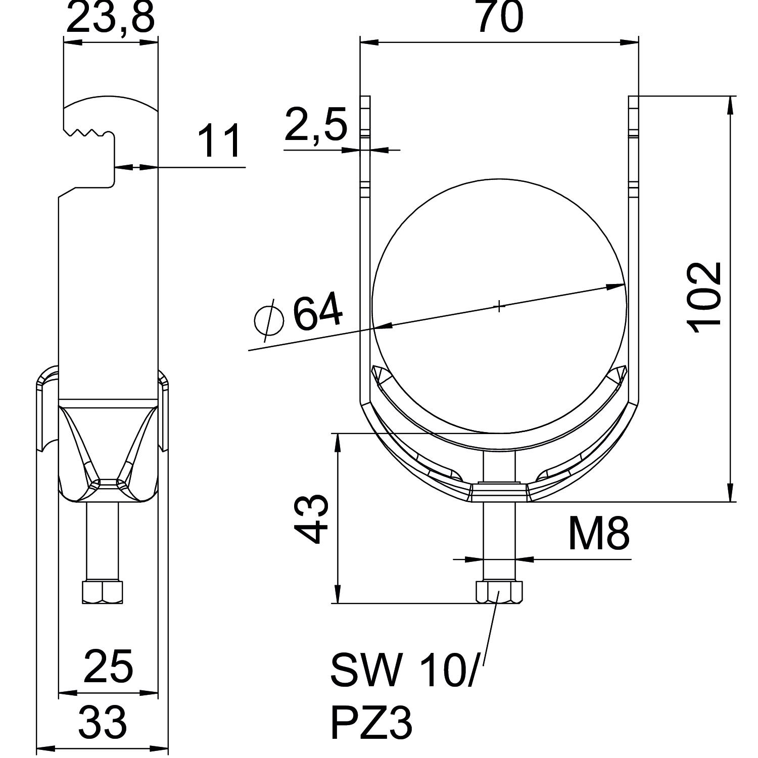 asennusputken halkaisijalle, maks. 64 mm asennusputken halkaisijalle, min. 58 mm Asennustapa Matala profiili CO2-jalanjälki (GWP) kehdosta portille 0,3554 kg CO2e / 1 Kappale Halogeeniton kyllä Kaapelien/asennusputkien lukumäärä 1 Kierre M8 Kiinnitysalue D maks. 64 mm Kiinnitysalue D min. 58 mm Koko 58-64mm Korkeus 102 mm Levyn paksuus 2,5 mm Lisäys, materiaali teräs Lisäys, pinta kuumasinkitty Maks. Kiristysmomentti 5 Nm Materiaali teräs Metallivanteella kyllä Mitta A 25 mm Mitta B 70 mm Mitta C 33 mm Mitta G (mm) M8 Mitta H 102 mm Mitta L 43 mm Mitta t 2,5 mm Pinta = upottamalla kuumasinkitty Pituus 25 mm Pituus, ulkomitat 33 mm Pohjamitta 70 mm Rakoleveys 10 mm Vanteen valmistusmateriaali teräs Vastavanteella ei - Kaikki tyypit
