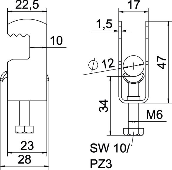 Tuotteen kuvausBügelschelle mit F-Fuß, Metalldruckwanne mit gerundeten Kanten für Kabelschutz. Zur vertikalen und horizontalen Montage von 1 Einzelkabel an Flacheisen. Mit 1-gängiger Schraube an Druckwanne, universeller Sechskant-Schraubenkopf SW10, mit Schlitz und Kreuzschlitz. Geeignet für Montage im Innen-und Außenbereich. Der Einsatz einer Gegenwanne wird empfohlen.
