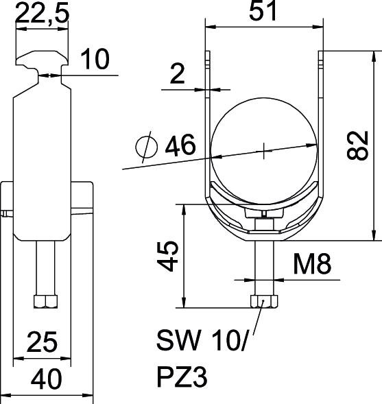 Tuotteen kuvausBügelschelle mit Hammerkopf-Fuß, Kunststoffdruckwanne aus Polypropylen. Zur vertikalen und horizontalen Montage von 1 Einzelkabel an C-Profilschiene. Für Schlitzweite 16 - 17 mm. Mit 1-gängiger Schraube an Druckwanne, universeller Sechskant-Schraubenkopf SW10, mit Schlitz und Kreuzschlitz. Geeignet für Montage im Innen-und Außenbereich. Der Einsatz einer Gegenwanne wird empfohlen.