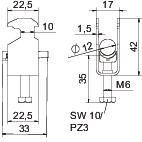 Tuotteen kuvausBügelschelle mit Hammerkopf-Fuß, Kunststoffdruckwanne aus Polypropylen. Zur vertikalen und horizontalen Montage von 1 Einzelkabel an C-Profilschiene. Für Schlitzweite 16 - 17 mm. Mit 1-gängiger Schraube an Druckwanne, universeller Sechskant-Schraubenkopf SW10, mit Schlitz und Kreuzschlitz. Geeignet für Montage im Innen-und Außenbereich. Der Einsatz einer Gegenwanne wird empfohlen.