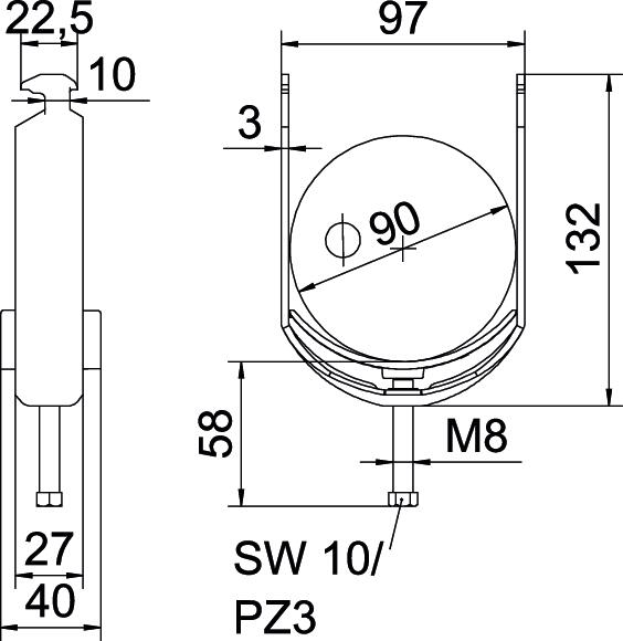 Tuotteen kuvausBügelschelle mit Hammerkopf-Fuß, Kunststoffdruckwanne aus Polypropylen. Zur vertikalen und horizontalen Montage von 1 Einzelkabel an C-Profilschiene. Für Schlitzweite 16 - 17 mm. Mit 1-gängiger Schraube an Druckwanne, universeller Sechskant-Schraubenkopf SW10, mit Schlitz und Kreuzschlitz. Geeignet für Montage im Innen-und Außenbereich. Der Einsatz einer Gegenwanne wird empfohlen.