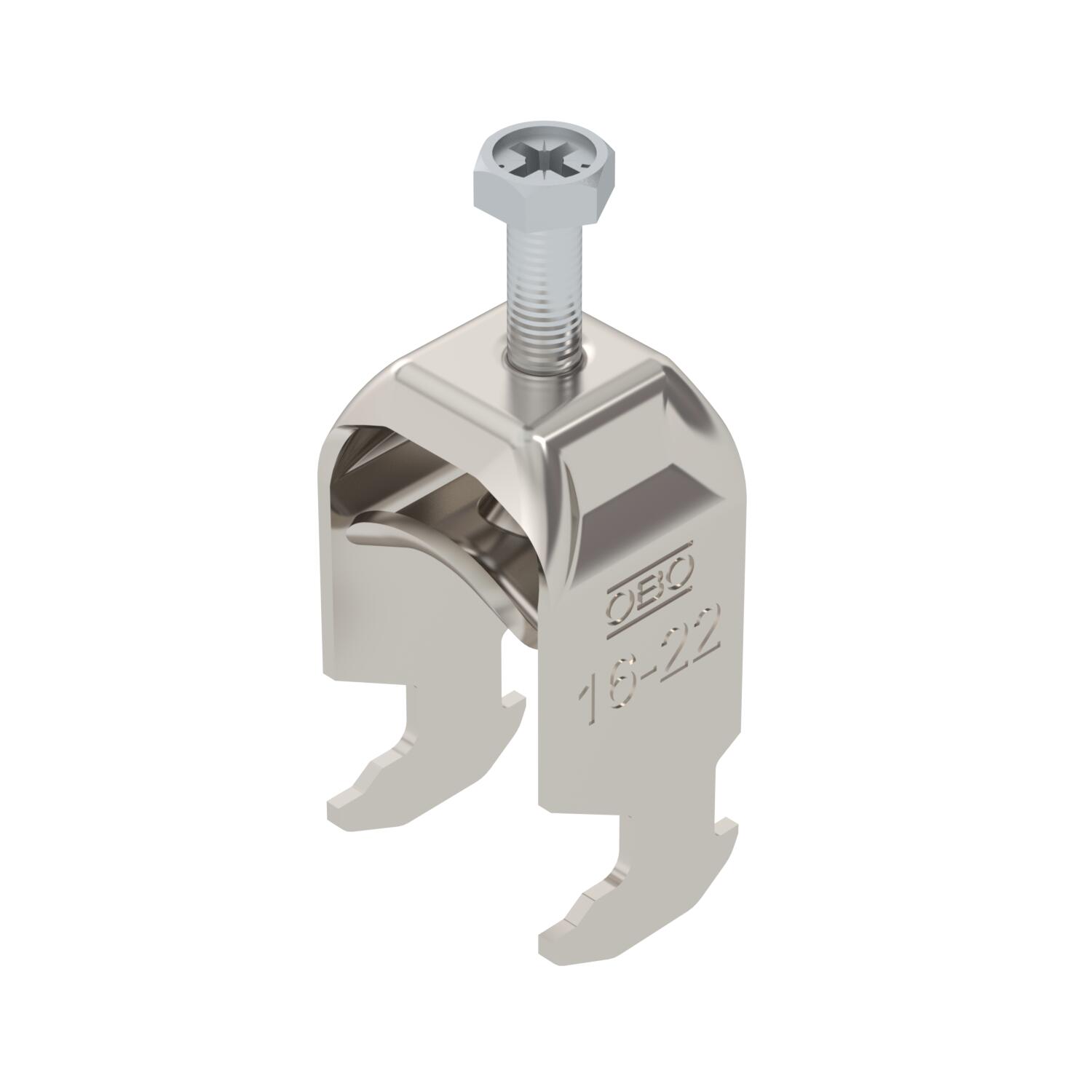 Tuotteen kuvausBügelschelle mit Hammerkopf-Fuß, Metalldruckwanne mit gerundeten Kanten für Kabelschutz. Zur vertikalen und horizontalen Montage von 1 Einzelkabel an C-Profilschiene. Für Schlitzweite 16 - 17 mm. Mit 1-gängiger Schraube an Druckwanne, universeller Sechskant-Schraubenkopf SW10, mit Schlitz und Kreuzschlitz. Geeignet für Montage im Innen-und Außenbereich. Der Einsatz einer Gegenwanne wird empfohlen.