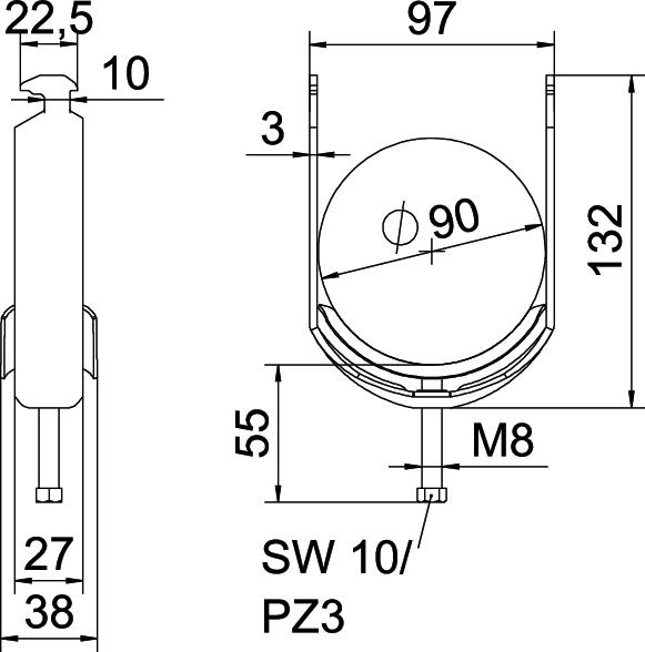 asennusputken halkaisijalle, maks. 90 mm asennusputken halkaisijalle, min. 82 mm Asennustapa Asennuskisko CO2-jalanjälki (GWP) kehdosta portille 0,7187 kg CO2e / 1 Kappale Halogeeniton kyllä Kaapelien/asennusputkien lukumäärä 1 Kierre M8 Kiinnitysalue D maks. 90 mm Kiinnitysalue D min. 82 mm kiskolle rakovälillä (välillä) maks. 17 mm kiskolle rakovälillä (välillä) min. 16 mm Koko 82-90mm Korkeus 132 mm Levyn paksuus 3 mm Lisäys, materiaali teräs Lisäys, pinta kuumasinkitty Maks. Kiristysmomentti 5 Nm Materiaali teräs Metallivanteella kyllä Mitta A 27 mm Mitta B 97 mm Mitta C 38 mm Mitta G (mm) M8 Mitta H 132 mm Mitta L 55 mm Mitta t 3 mm Muovikannattimella ei Palonkestävyys kyllä Pinta = upottamalla kuumasinkitty Pituus 27 mm Pituus, ulkomitat 38 mm Pohjamitta 97 mm Rakoleveys 10 mm Vanteen valmistusmateriaali teräs Vastavanteella ei - Kaikki tyypit