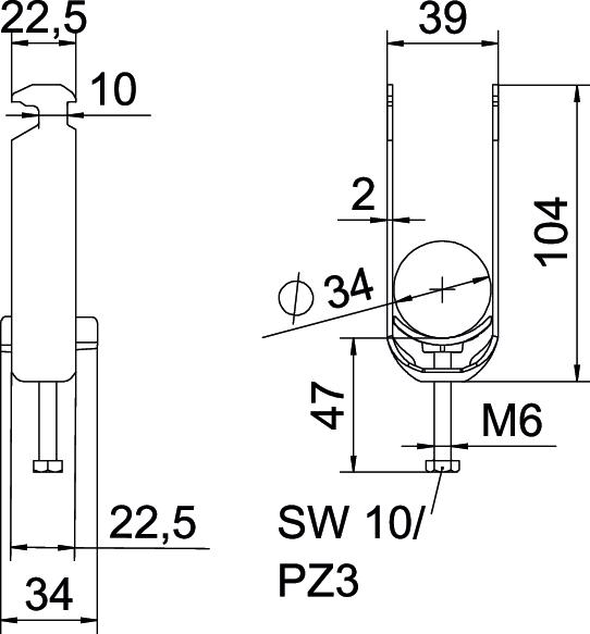 Tuotteen kuvausBügelschelle mit Hammerkopf-Fuß, Kunststoffdruckwanne aus Polypropylen. Zur vertikalen und horizontalen Montage von 2 Einzelkabeln an C-Profilschiene. Für Schlitzweite 16 - 17 mm. Mit 1-gängiger Schraube an Druckwanne, universeller Sechskant-Schraubenkopf SW10, mit Schlitz und Kreuzschlitz. Geeignet für Montage im Innen- und Außenbereich. Mehrere Kabel sollten durch Doppelwannen getrennt werden. Der Einsatz einer Gegenwanne wird empfohlen.
