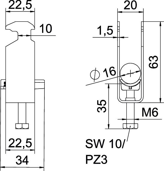 Tuotteen kuvausBügelschelle mit Hammerkopf-Fuß, Kunststoffdruckwanne aus Polypropylen. Zur vertikalen und horizontalen Montage von 2 Einzelkabeln an C-Profilschiene. Für Schlitzweite 16 - 17 mm. Mit 1-gängiger Schraube an Druckwanne, universeller Sechskant-Schraubenkopf SW10, mit Schlitz und Kreuzschlitz. Geeignet für Montage im Innen- und Außenbereich. Mehrere Kabel sollten durch Doppelwannen getrennt werden. Der Einsatz einer Gegenwanne wird empfohlen.
