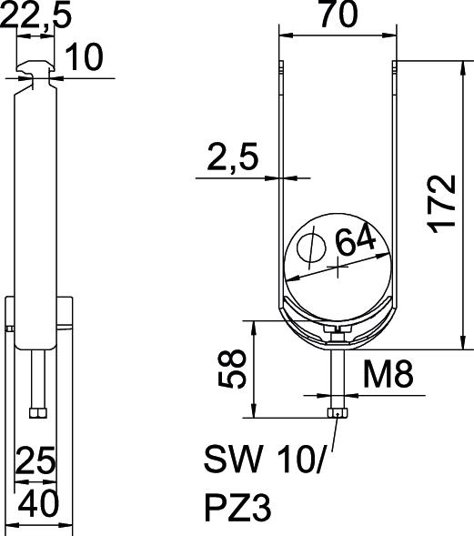 Tuotteen kuvausBügelschelle mit Hammerkopf-Fuß, Kunststoffdruckwanne aus Polypropylen. Zur vertikalen und horizontalen Montage von 2 Einzelkabeln an C-Profilschiene. Für Schlitzweite 16 - 17 mm. Mit 1-gängiger Schraube an Druckwanne, universeller Sechskant-Schraubenkopf SW10, mit Schlitz und Kreuzschlitz. Geeignet für Montage im Innen- und Außenbereich. Mehrere Kabel sollten durch Doppelwannen getrennt werden. Der Einsatz einer Gegenwanne wird empfohlen.