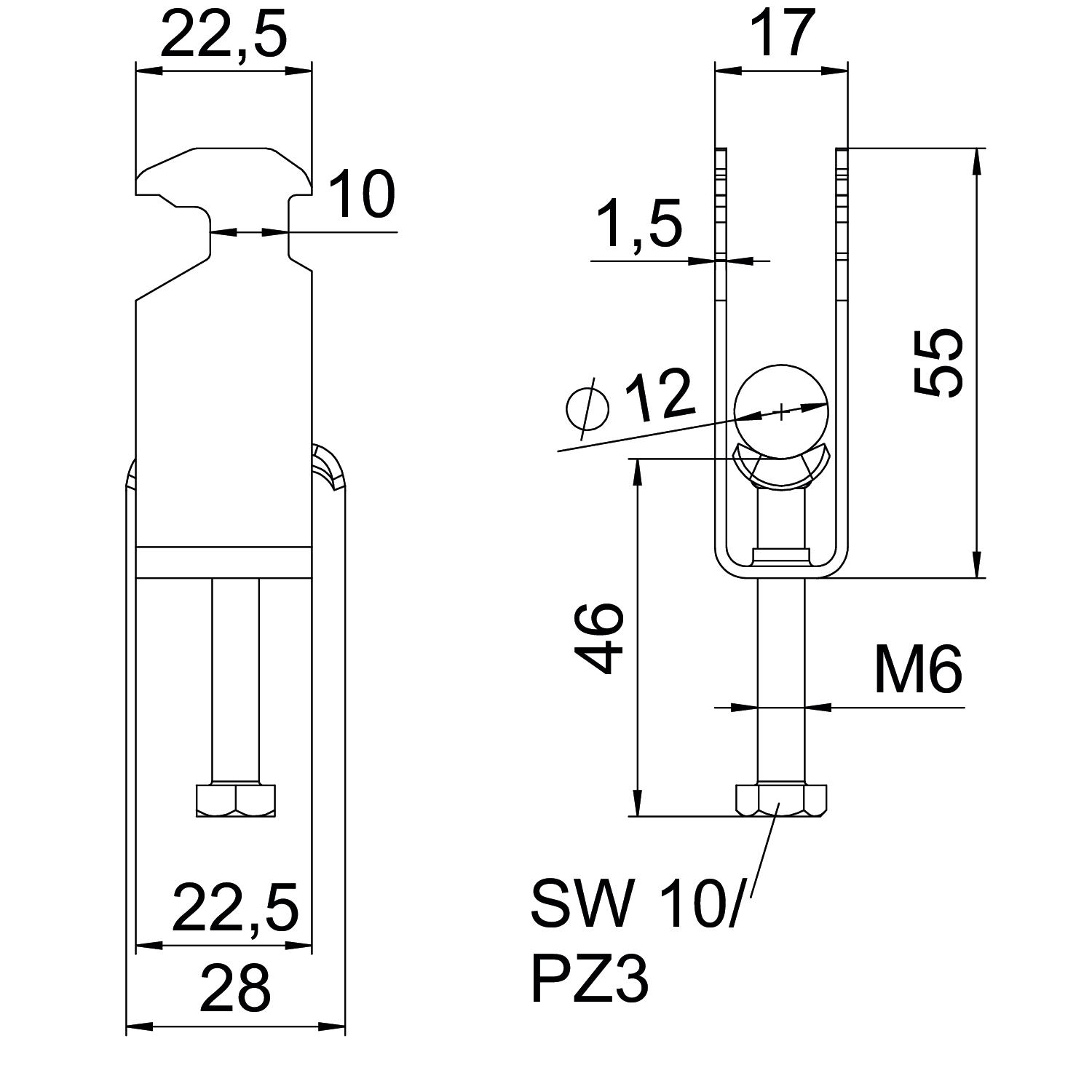 Tuotteen kuvausBügelschelle mit Hammerkopf-Fuß, Metalldruckwanne mit gerundeten Kanten für Kabelschutz. Zur vertikalen und horizontalen Montage von 2 Einzelkabeln an C-Profilschiene. Für Schlitzweite 16 - 17 mm. Mit 1-gängiger Schraube an Druckwanne, universeller Sechskant-Schraubenkopf SW10, mit Schlitz und Kreuzschlitz. Geeignet für Montage im Innen- und Außenbereich. Mehrere Kabel sollten durch Doppelwannen getrennt werden. Der Einsatz einer Gegenwanne wird empfohlen.