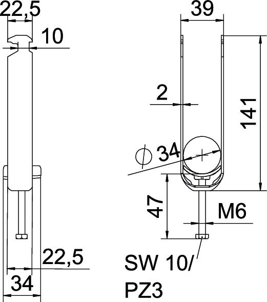 Tuotteen kuvausBügelschelle mit Hammerkopf-Fuß, Kunststoffdruckwanne aus Polypropylen. Zur vertikalen und horizontalen Montage von 3 Einzelkabeln an C-Profilschiene. Für Schlitzweite 16 - 17 mm. Mit 1-gängiger Schraube an Druckwanne, universeller Sechskant-Schraubenkopf SW10, mit Schlitz und Kreuzschlitz. Geeignet für Montage im Innen- und Außenbereich. Mehrere Kabel sollten durch Doppelwannen getrennt werden. Der Einsatz einer Gegenwanne wird empfohlen.