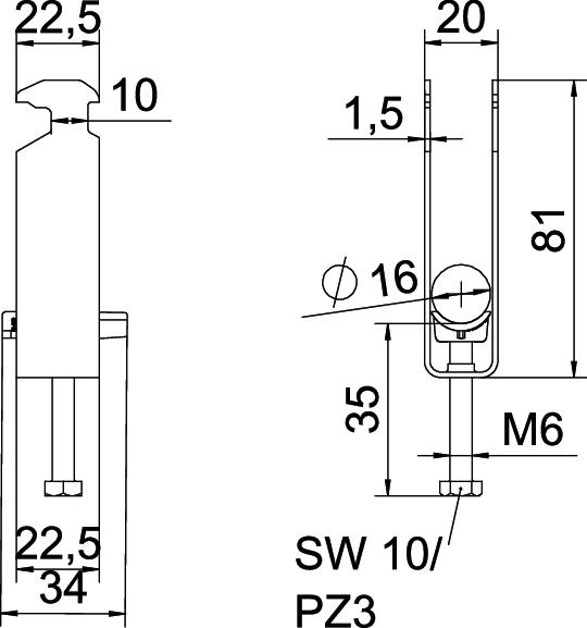Tuotteen kuvausBügelschelle mit Hammerkopf-Fuß, Kunststoffdruckwanne aus Polypropylen. Zur vertikalen und horizontalen Montage von 3 Einzelkabeln an C-Profilschiene. Für Schlitzweite 16 - 17 mm. Mit 1-gängiger Schraube an Druckwanne, universeller Sechskant-Schraubenkopf SW10, mit Schlitz und Kreuzschlitz. Geeignet für Montage im Innen- und Außenbereich. Mehrere Kabel sollten durch Doppelwannen getrennt werden. Der Einsatz einer Gegenwanne wird empfohlen.