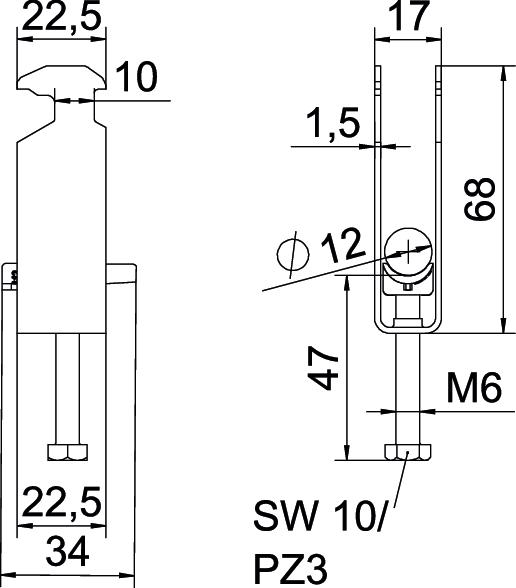 Tuotteen kuvausBügelschelle mit Hammerkopf-Fuß, Kunststoffdruckwanne aus Polypropylen. Zur vertikalen und horizontalen Montage von 3 Einzelkabeln an C-Profilschiene. Für Schlitzweite 16 - 17 mm. Mit 1-gängiger Schraube an Druckwanne, universeller Sechskant-Schraubenkopf SW10, mit Schlitz und Kreuzschlitz. Geeignet für Montage im Innen- und Außenbereich. Mehrere Kabel sollten durch Doppelwannen getrennt werden. Der Einsatz einer Gegenwanne wird empfohlen.