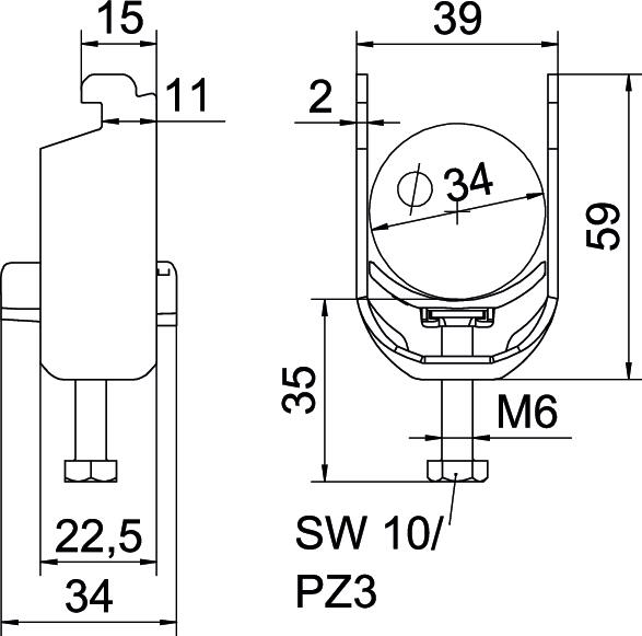 Tuotteen kuvausBügelschelle mit N-Fuß, Kunststoffdruckwanne aus Polypropylen. Zur vertikalen und horizontalen Montage von 1 Einzelkabel an C-Profilschiene. Für Schlitzweite 11 - 12 mm. Mit 1-gängiger Schraube an Druckwanne, universeller Sechskant-Schraubenkopf SW10, mit Schlitz und Kreuzschlitz. Geeignet für Montage im Innen-und Außenbereich. Der Einsatz einer Gegenwanne wird empfohlen.