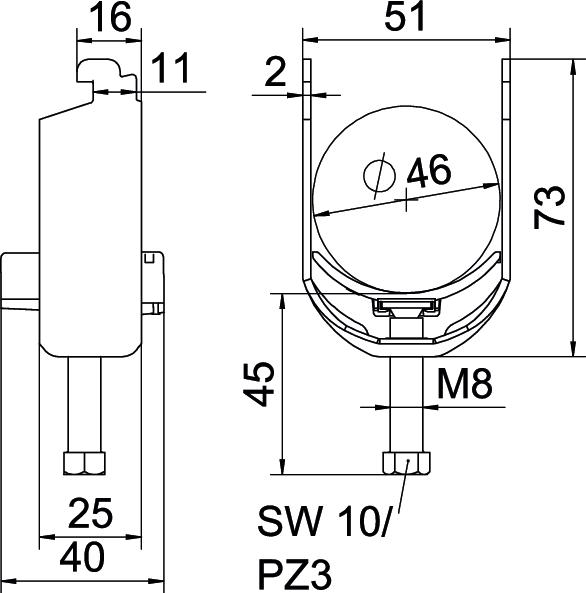 Tuotteen kuvausBügelschelle mit N-Fuß, Kunststoffdruckwanne aus Polypropylen. Zur vertikalen und horizontalen Montage von 1 Einzelkabel an C-Profilschiene. Für Schlitzweite 11 - 12 mm. Mit 1-gängiger Schraube an Druckwanne, universeller Sechskant-Schraubenkopf SW10, mit Schlitz und Kreuzschlitz. Geeignet für Montage im Innen-und Außenbereich. Der Einsatz einer Gegenwanne wird empfohlen.
