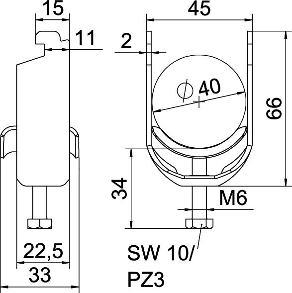 Tuotteen kuvausBügelschelle mit N-Fuß, Metalldruckwanne mit gerundeten Kanten für Kabelschutz. Zur vertikalen und horizontalen Montage von 1 Einzelkabel an C-Profilschiene. Für Schlitzweite 11 - 12 mm. Mit 1-gängiger Schraube an Druckwanne, universeller Sechskant-Schraubenkopf SW10, mit Schlitz und Kreuzschlitz. Geeignet für Montage im Innen-und Außenbereich. Der Einsatz einer Gegenwanne wird empfohlen.