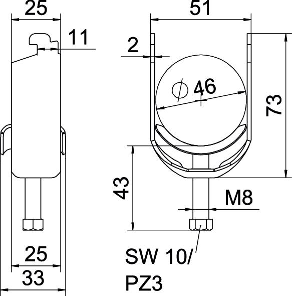 Tuotteen kuvausBügelschelle mit N-Fuß, Metalldruckwanne mit gerundeten Kanten für Kabelschutz. Zur vertikalen und horizontalen Montage von 1 Einzelkabel an C-Profilschiene. Für Schlitzweite 11 - 12 mm. Mit 1-gängiger Schraube an Druckwanne, universeller Sechskant-Schraubenkopf SW10, mit Schlitz und Kreuzschlitz. Geeignet für Montage im Innen-und Außenbereich. Der Einsatz einer Gegenwanne wird empfohlen.