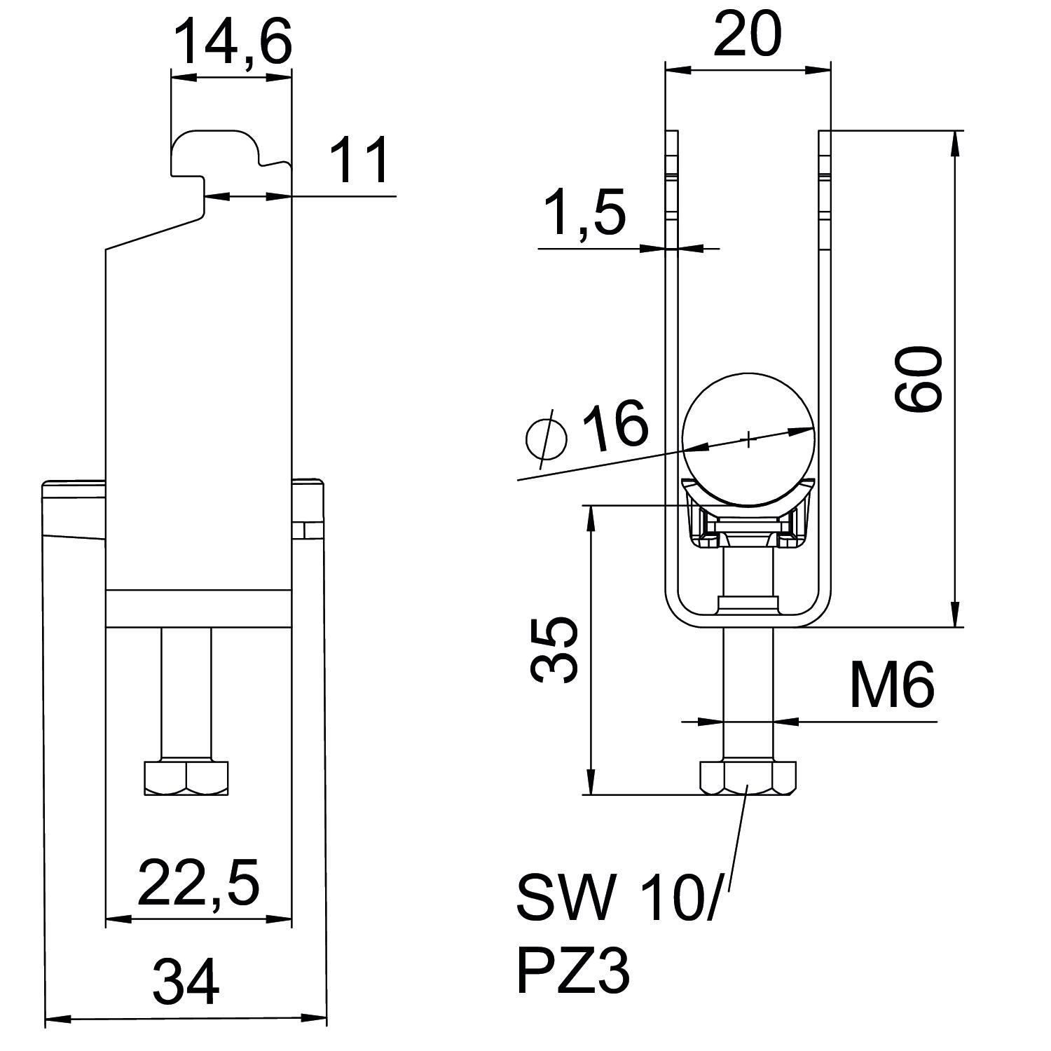 Tuotteen kuvausBügelschelle mit N-Fuß, Kunststoffdruckwanne aus Polypropylen. Zur vertikalen und horizontalen Montage von 2 Einzelkabeln an C-Profilschiene. Für Schlitzweite 11 - 12 mm. Mit 1-gängiger Schraube an Druckwanne, universeller Sechskant-Schraubenkopf SW10, mit Schlitz und Kreuzschlitz. Geeignet für Montage im Innen-und Außenbereich. Mehrere Kabel sollten durch Doppelwannen getrennt werden. Der Einsatz einer Gegenwanne wird empfohlen.