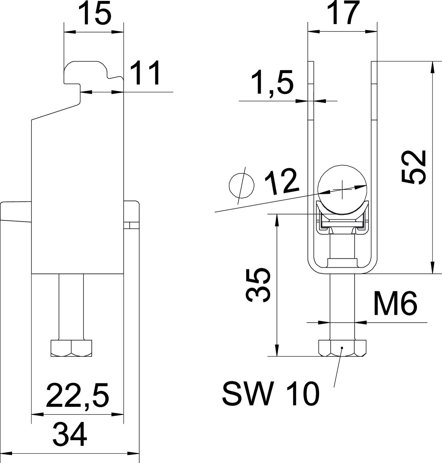 Tuotteen kuvausBügelschelle mit N-Fuß, Kunststoffdruckwanne aus Polypropylen. Zur vertikalen und horizontalen Montage von 2 Einzelkabeln an C-Profilschiene. Für Schlitzweite 11 - 12 mm. Mit 1-gängiger Schraube an Druckwanne, universeller Sechskant-Schraubenkopf SW10, mit Schlitz und Kreuzschlitz. Geeignet für Montage im Innen-und Außenbereich. Mehrere Kabel sollten durch Doppelwannen getrennt werden. Der Einsatz einer Gegenwanne wird empfohlen.