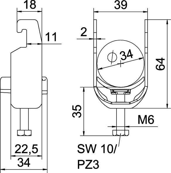 Tuotteen kuvausBügelschelle mit U-Fuß, Kunststoffdruckwanne aus Polypropylen. Zur vertikalen und horizontalen Montage von 1 Einzelkabel an C-Profilschiene. Für Schlitzweite 18 - 22 mm. Mit 1-gängiger Schraube an Druckwanne, universeller Sechskant-Schraubenkopf SW10, mit Schlitz und Kreuzschlitz. Geeignet für Montage im Innen-und Außenbereich. Der Einsatz einer Gegenwanne wird empfohlen.