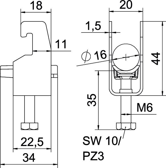 Tuotteen kuvausBügelschelle mit U-Fuß, Kunststoffdruckwanne aus Polypropylen. Zur vertikalen und horizontalen Montage von 1 Einzelkabel an C-Profilschiene. Für Schlitzweite 18 - 22 mm. Mit 1-gängiger Schraube an Druckwanne, universeller Sechskant-Schraubenkopf SW10, mit Schlitz und Kreuzschlitz. Geeignet für Montage im Innen-und Außenbereich. Der Einsatz einer Gegenwanne wird empfohlen.