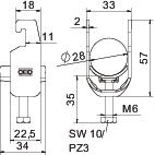 Tuotteen kuvausBügelschelle mit U-Fuß, Kunststoffdruckwanne aus Polypropylen. Zur vertikalen und horizontalen Montage von 1 Einzelkabel an C-Profilschiene. Für Schlitzweite 18 - 22 mm. Mit 1-gängiger Schraube an Druckwanne, universeller Sechskant-Schraubenkopf SW10, mit Schlitz und Kreuzschlitz. Geeignet für Montage im Innen-und Außenbereich. Der Einsatz einer Gegenwanne wird empfohlen.