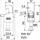 Tuotteen kuvausBügelschelle mit U-Fuß, Kunststoffdruckwanne aus Polypropylen. Zur vertikalen und horizontalen Montage von 1 Einzelkabel an C-Profilschiene. Für Schlitzweite 18 - 22 mm. Mit 1-gängiger Schraube an Druckwanne, universeller Sechskant-Schraubenkopf SW10, mit Schlitz und Kreuzschlitz. Geeignet für Montage im Innen-und Außenbereich. Der Einsatz einer Gegenwanne wird empfohlen.