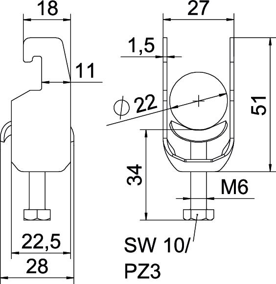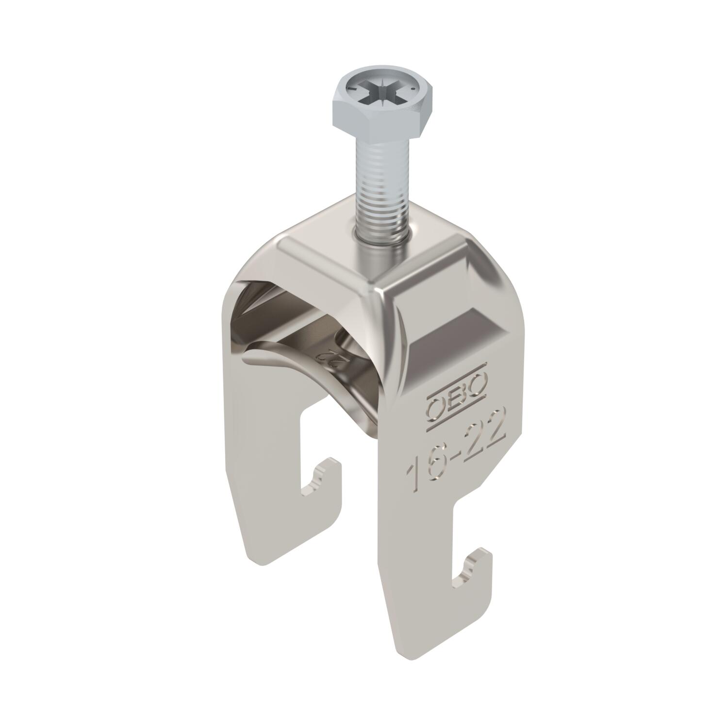 Tuotteen kuvausBügelschelle mit U-Fuß, Metalldruckwanne mit gerundeten Kanten für Kabelschutz. Zur vertikalen und horizontalen Montage von 1 Einzelkabel an C-Profilschiene. Für Schlitzweite 18 - 22 mm. Mit 1-gängiger Schraube an Druckwanne, universeller Sechskant-Schraubenkopf SW10, mit Schlitz und Kreuzschlitz. Geeignet für Montage im Innen-und Außenbereich. Der Einsatz einer Gegenwanne wird empfohlen.