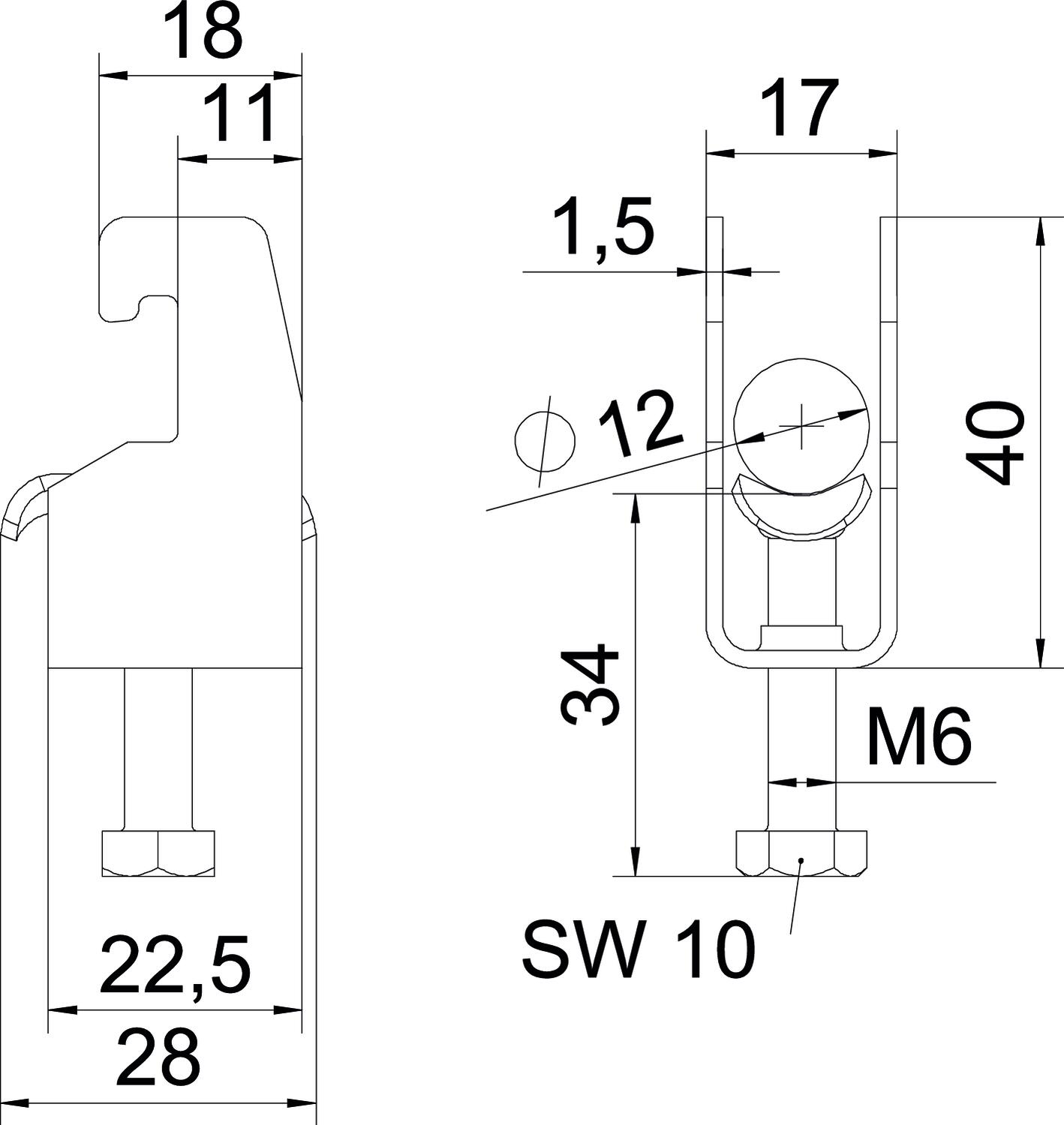 Tuotteen kuvausBügelschelle mit U-Fuß, Metalldruckwanne mit gerundeten Kanten für Kabelschutz. Zur vertikalen und horizontalen Montage von 1 Einzelkabel an C-Profilschiene. Für Schlitzweite 18 - 22 mm. Mit 1-gängiger Schraube an Druckwanne, universeller Sechskant-Schraubenkopf SW10, mit Schlitz und Kreuzschlitz. Geeignet für Montage im Innen-und Außenbereich. Der Einsatz einer Gegenwanne wird empfohlen.