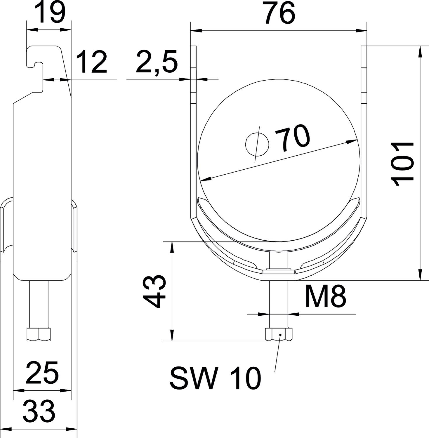 asennusputken halkaisijalle, maks. 70 mm asennusputken halkaisijalle, min. 64 mm Asennustapa Asennuskisko CO2-jalanjälki (GWP) kehdosta portille 0,374 kg CO2e / 1 Kappale Halogeeniton kyllä Kaapelien/asennusputkien lukumäärä 1 Kierre M8 Kiinnitysalue D maks. 70 mm Kiinnitysalue D min. 64 mm kiskolle rakovälillä (välillä) maks. 22 mm kiskolle rakovälillä (välillä) min. 18 mm Koko 64-70mm Korkeus 101 mm Levyn paksuus 2,5 mm Lisäys, materiaali teräs Lisäys, pinta kuumasinkitty Maks. Kiristysmomentti 5 Nm Materiaali teräs Metallivanteella kyllä Mitta A 25 mm Mitta B 76 mm Mitta C 33 mm Mitta G (mm) M8 Mitta H 101 mm Mitta L 43 mm Mitta t 2,5 mm Palonkestävyys kyllä Pinta = upottamalla kuumasinkitty Pituus 25 mm Pituus, ulkomitat 33 mm Pohjamitta 76 mm Rakoleveys 10 mm Vanteen valmistusmateriaali teräs Vastavanteella ei - Kaikki tyypit