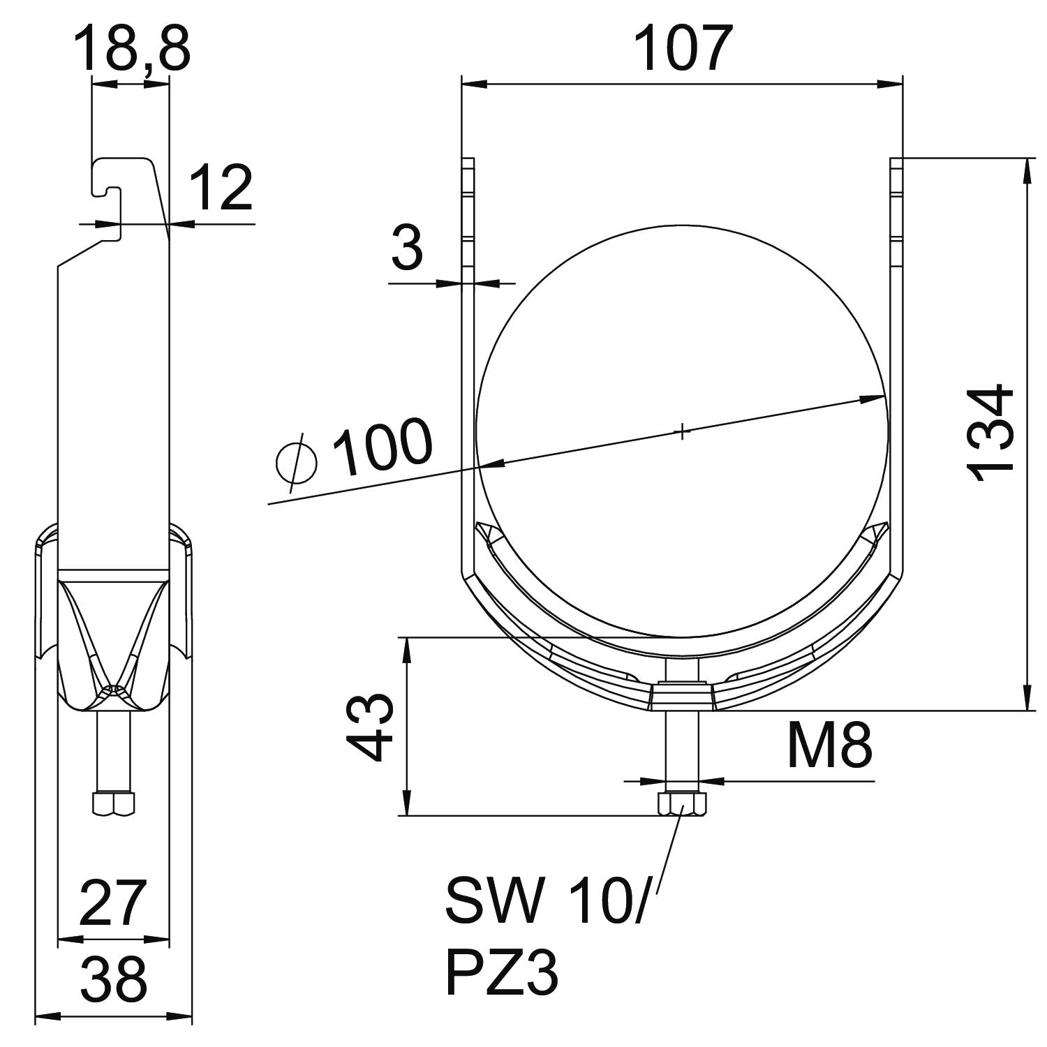 asennusputken halkaisijalle, maks. 100 mm asennusputken halkaisijalle, min. 90 mm Asennustapa Asennuskisko CO2-jalanjälki (GWP) kehdosta portille 0,753 kg CO2e / 1 Kappale Halogeeniton kyllä Kaapelien/asennusputkien lukumäärä 1 Kierre M8 Kiinnitysalue D maks. 100 mm Kiinnitysalue D min. 90 mm kiskolle rakovälillä (välillä) maks. 22 mm kiskolle rakovälillä (välillä) min. 18 mm Koko 90-100mm Korkeus 134 mm Levyn paksuus 3 mm Lisäys, materiaali teräs Lisäys, pinta kuumasinkitty Maks. Kiristysmomentti 5 Nm Materiaali teräs Metallivanteella kyllä Mitta A 27 mm Mitta B 107 mm Mitta C 38 mm Mitta G (mm) M8 Mitta H 134 mm Mitta L 43 mm Mitta t 3 mm Muovikannattimella ei Palonkestävyys kyllä Pinta = upottamalla kuumasinkitty Pituus 27 mm Pituus, ulkomitat 38 mm Pohjamitta 107 mm Rakoleveys 10 mm Vanteen valmistusmateriaali teräs Vastavanteella ei - Kaikki tyypit