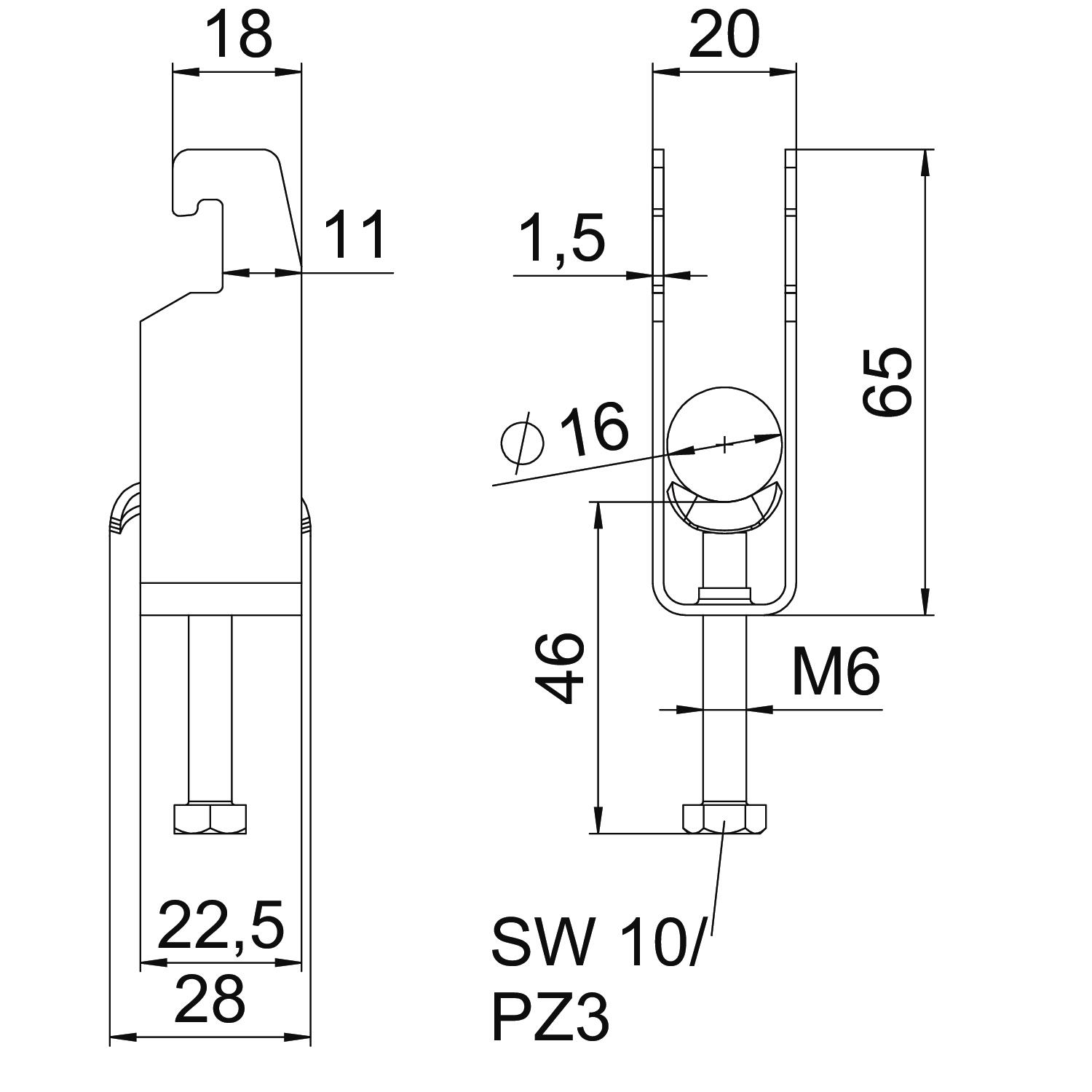 Tuotteen kuvausBügelschelle mit U-Fuß, Metalldruckwanne mit gerundeten Kanten für Kabelschutz. Zur vertikalen und horizontalen Montage von 2 Einzelkabeln an C-Profilschiene. Für Schlitzweite 18 - 22 mm. Mit 1-gängiger Schraube an Druckwanne, universeller Sechskant-Schraubenkopf SW10, mit Schlitz und Kreuzschlitz. Geeignet für Montage im Innen- und Außenbereich. Mehrere Kabel sollten durch Doppelwannen getrennt werden. Der Einsatz einer Gegenwanne wird empfohlen.