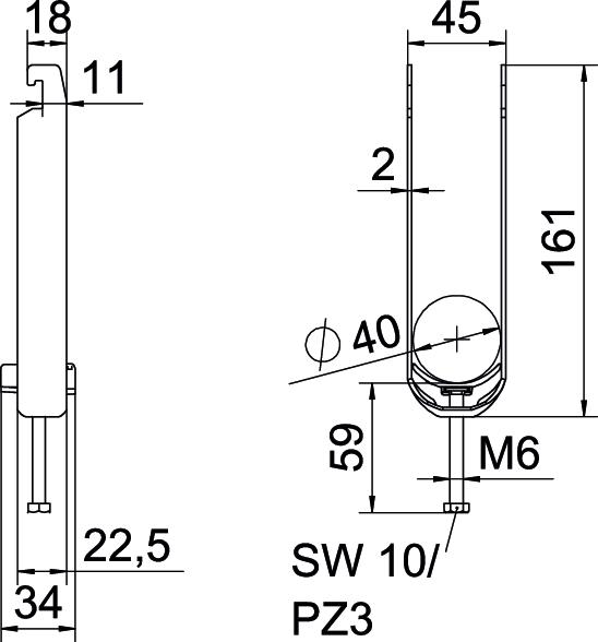 Tuotteen kuvausBügelschelle mit U-Fuß, Kunststoffdruckwanne aus Polypropylen. Zur vertikalen und horizontalen Montage von 3 Einzelkabeln an C-Profilschiene. Für Schlitzweite 18 mm oder 22 mm. Mit 1-gängiger Schraube an Druckwanne, universeller Sechskant-Schraubenkopf SW10, mit Schlitz und Kreuzschlitz. Geeignet für Montage im Innen- und Außenbereich. Mehrere Kabel sollten durch Doppelwannen getrennt werden. Der Einsatz einer Gegenwanne wird empfohlen.