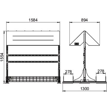 Tuotteen kuvausInverter frame for the protected installation of several inverters for PV systems on flat roofs. Free-standing. Loading on both sides possible. 2 mesh cable trays included for ballasting and for the routing of cables.