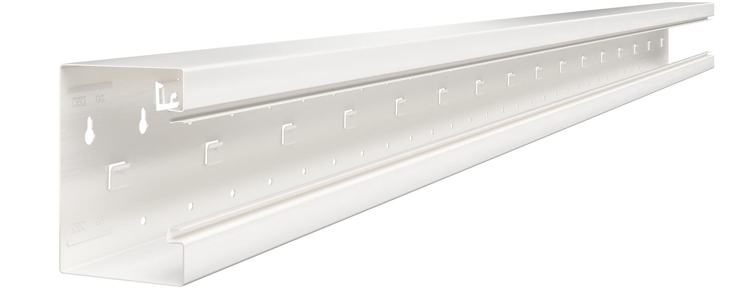 Tuotteen kuvausJohtokanava GS asennettavaksi suoraan seinään tai seinäkiinnikkeisiin. Johtokanavassa on kiinnikkeet teräspeltisen väliseinän kiinnitykseen. Kanavaosien välinen potentiaalintasaus toteutetaan jatkokappaleella. Kannen ja kanavan välinen maadoitus ja potentiaalitasaus on varmistettu patentoidulla kannen erikoisrakenteella. Kansiaukko on 76,5 mm. Kansi pitää tilata erikseen.