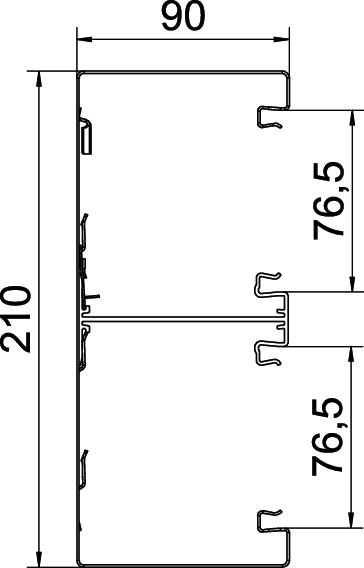 Tuotteen kuvausJohtokanava GS asennettavaksi suoraan seinään tai seinäkiinnikkeisiin. Johtokanavassa on johtavat kiinnityslaatat teräksisen väliseinän kiinnitykseen. Kanavaosien välinen potentiaalintasaus toteutetaan jatkokappaleella. Kannen ja kanavan välinen maadoitus ja potentiaalitasaus on varmistettu patentoidulla kannen erikoisrakenteella. Kansiaukko on 76,5 mm. Kansi pitää tilata erikseen.