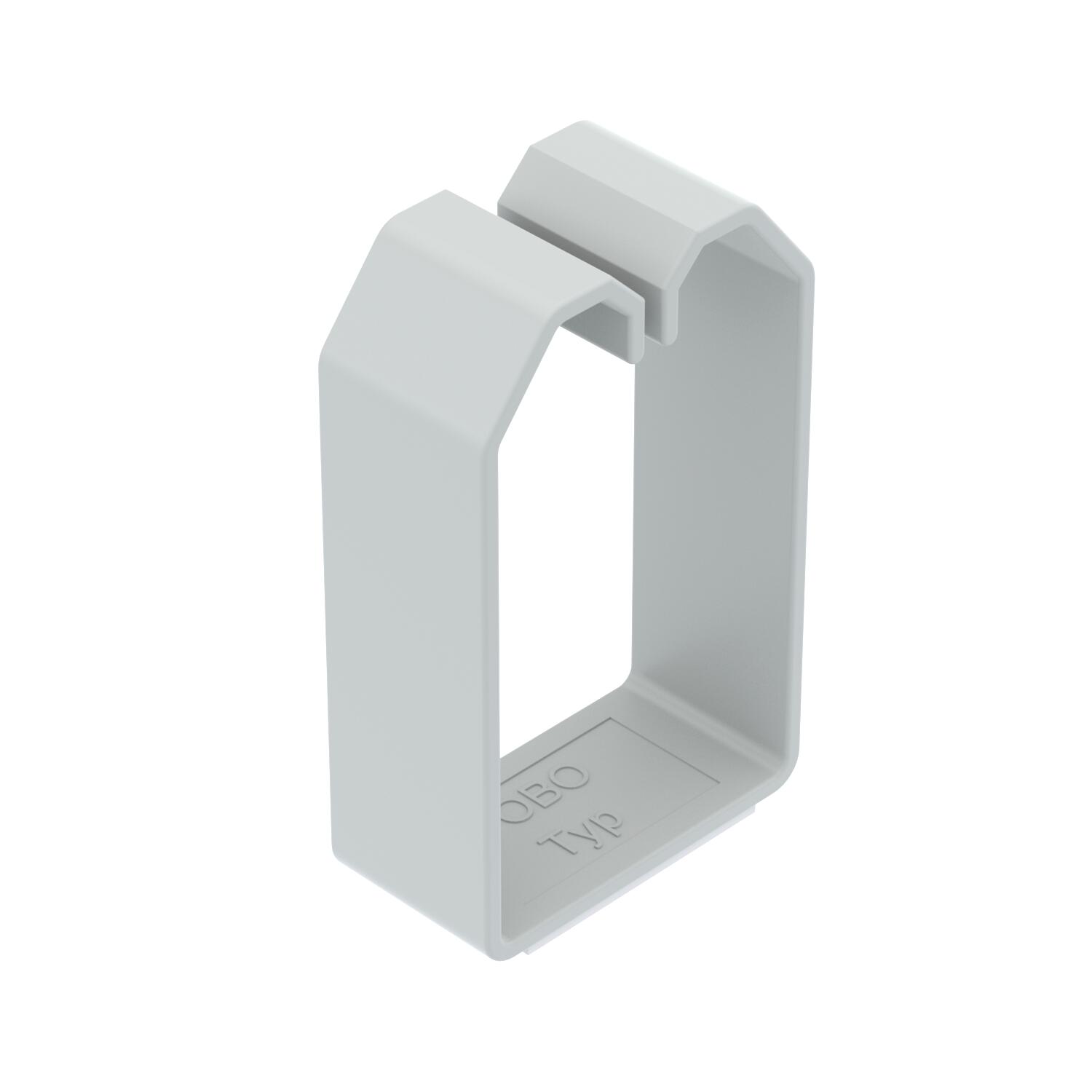 Tuotteen kuvausKaapelikiinnikke johdotuskouruille LKV. Kaapelikiinnikkeellä kiinnitetään kaikki johdotuskouruun asennetut johdot ja se estää niiden ulostulon, kun kansi otetaan pois. Alapuolella teippi asennusta varten.