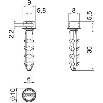 Tuotteen kuvausKiinnitystulppa Delta-Push® sähköasennusten kiinnityksiin. Soveltuu alustoille kuten betoni, kalkkihiekkakivi, täystiili, reikätiili ja kevytbetoni. Asennus ilman työkaluja painamalla porareikään seinässä tai katossa. Ilman ruuveja. Johdinsiteen pidikkeellä maks. 4,8 mm leveydellä ja 2 mm korkeudella kaapelien ja putkien kiinnittämiseen.