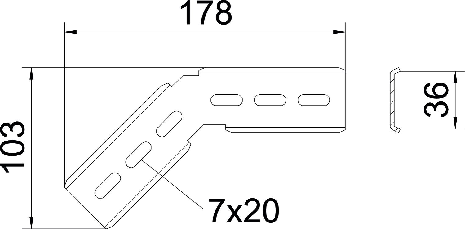 Tuotteen kuvausKulmakappale 45°, pystykulmaan, lankahyllyille CGR ja GRM sivumitta 55 mm.