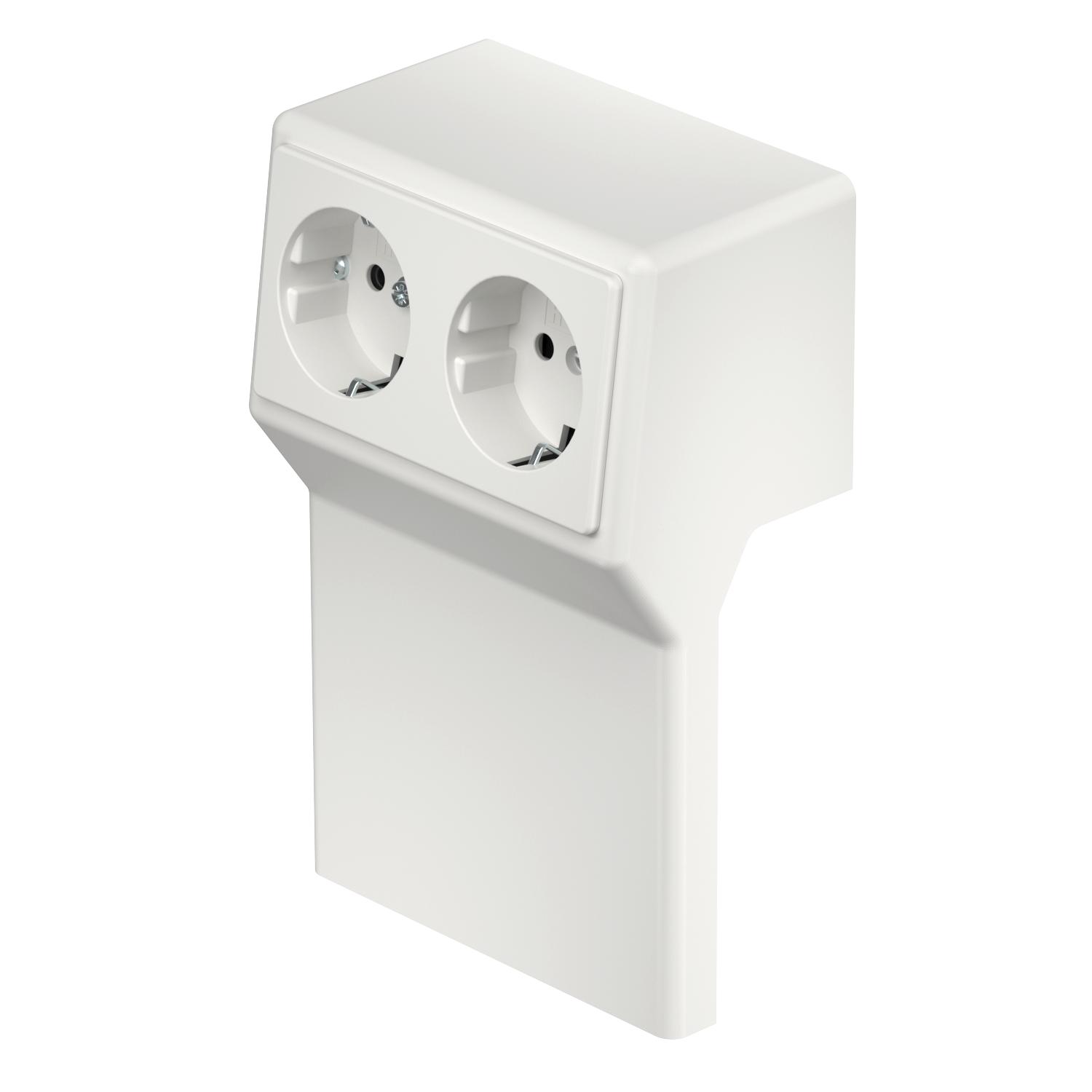 Tuotteen kuvausKojerasia 2-osaisella maadoitetulla pistorasialla jalkalistakanaviin Rauduo.