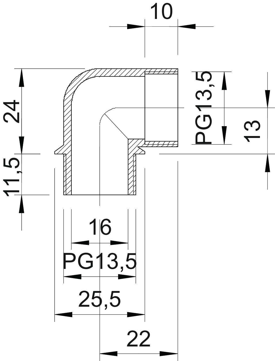 Tuotteen kuvausKulmakappale PK-sisä- ja ulkokierteellä DIN 40430 mukaan.