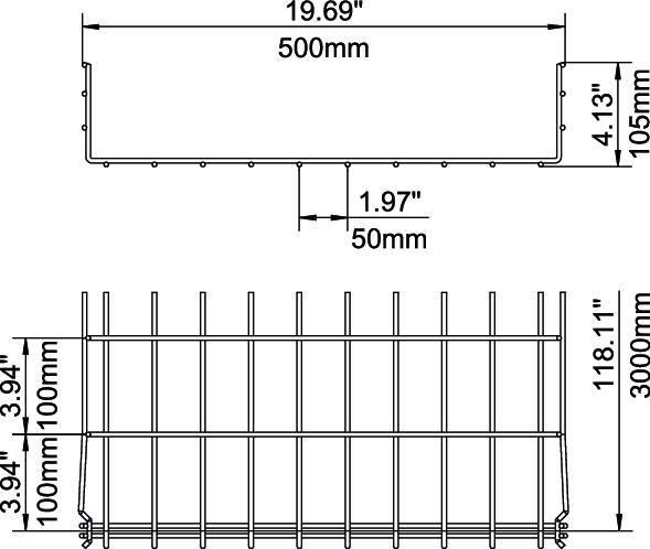 Lankahyllyssä on jatkopää johon hylly liitetään painamalla, joten ei tarvita jatkokappaleita. Hyllyn silmäkoko on 50 x 100 mm.